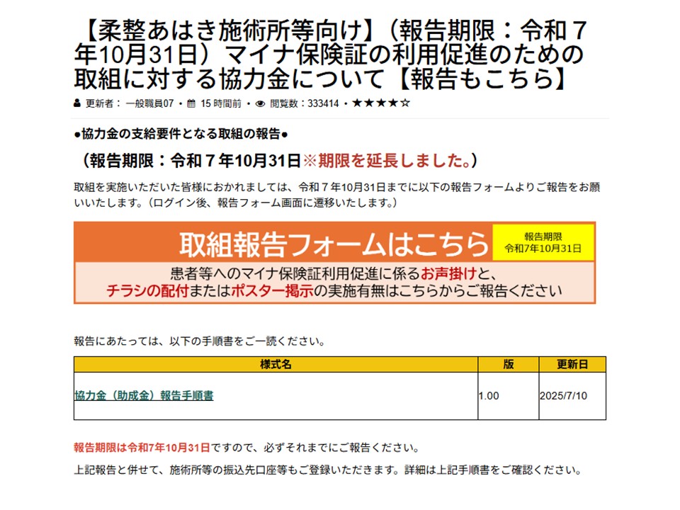 マイナ保険証の利用促進のための協力金(5万円)の報告期限が延長されました。